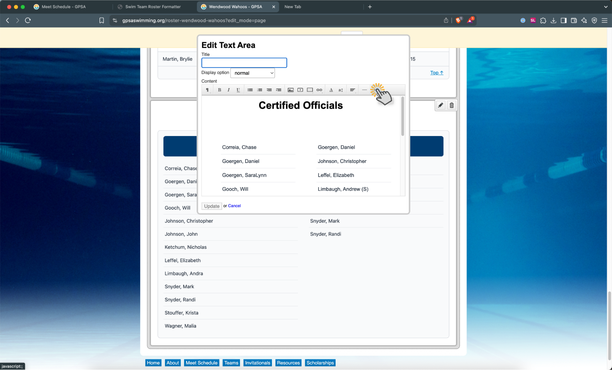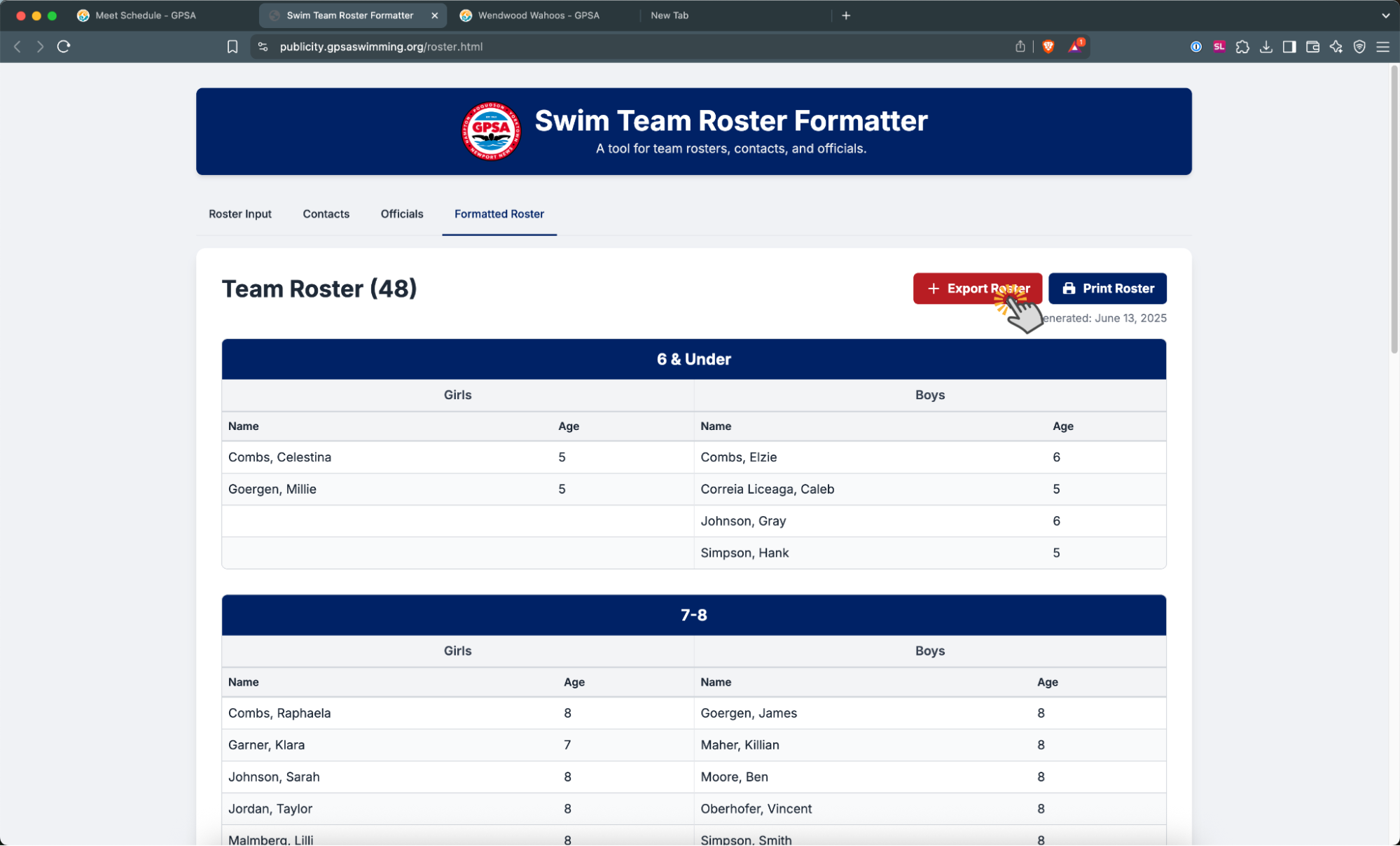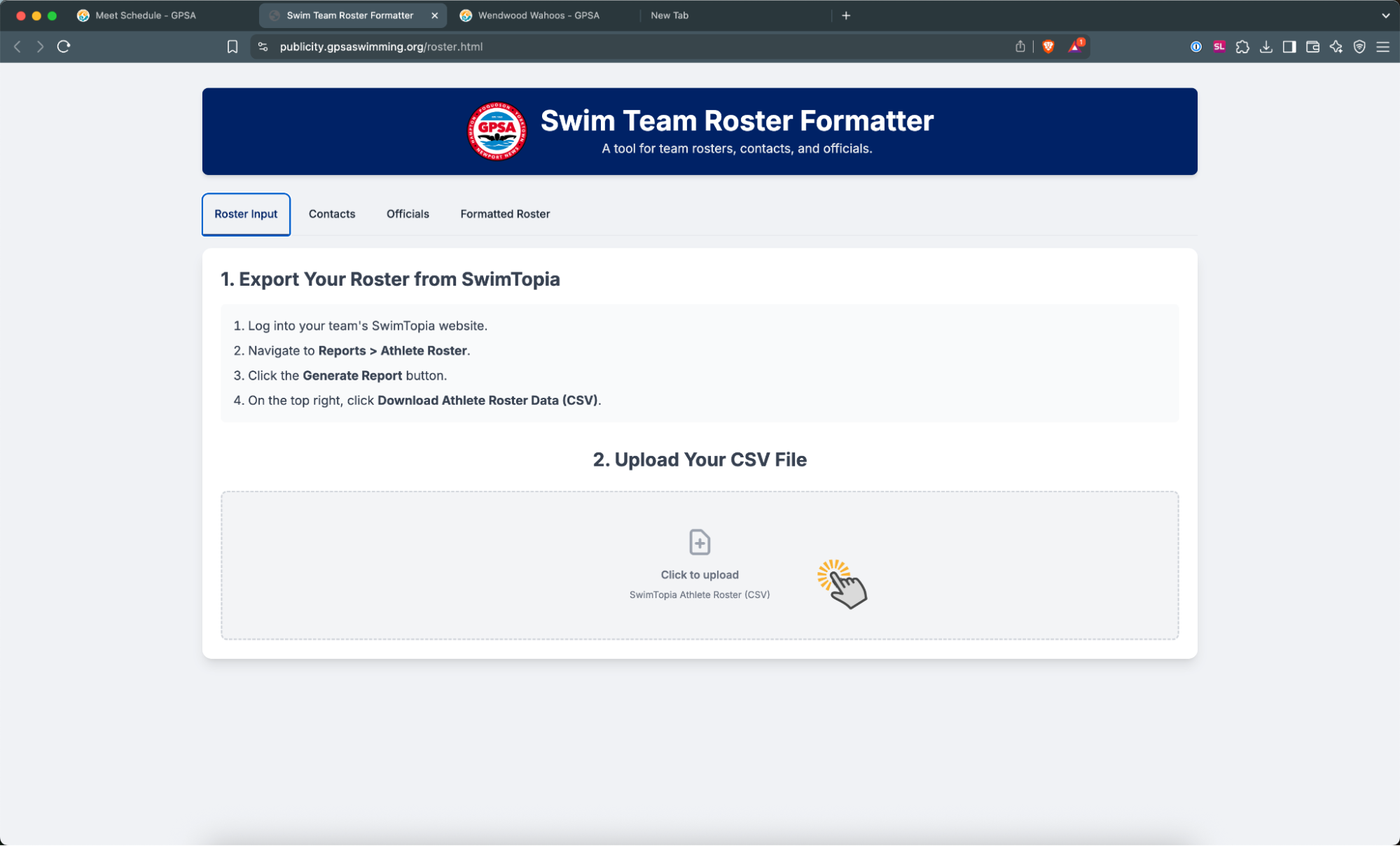 4. Also click on the GPSA Roster Formatting Tool link - This will open the GPSA Roster Formatter in a new tab