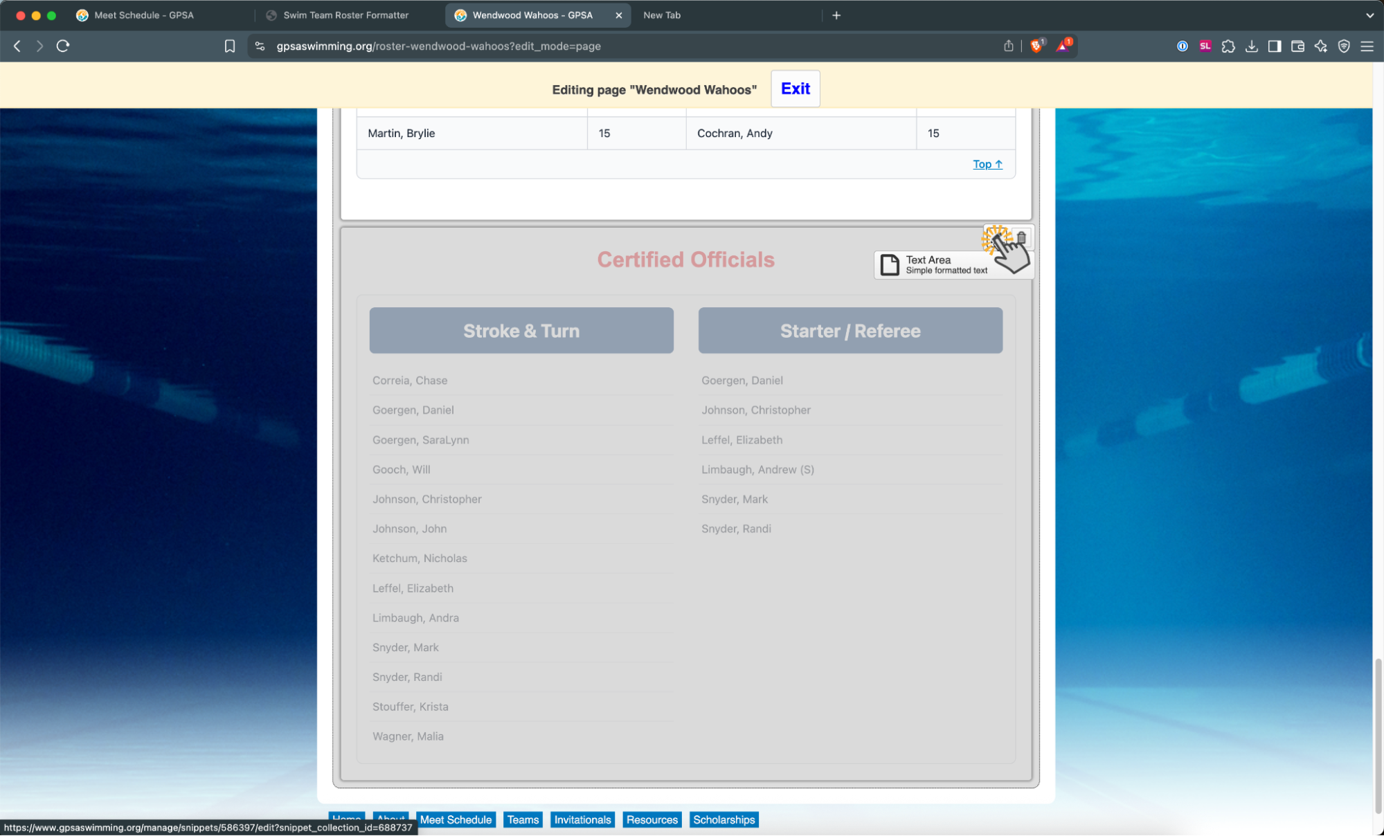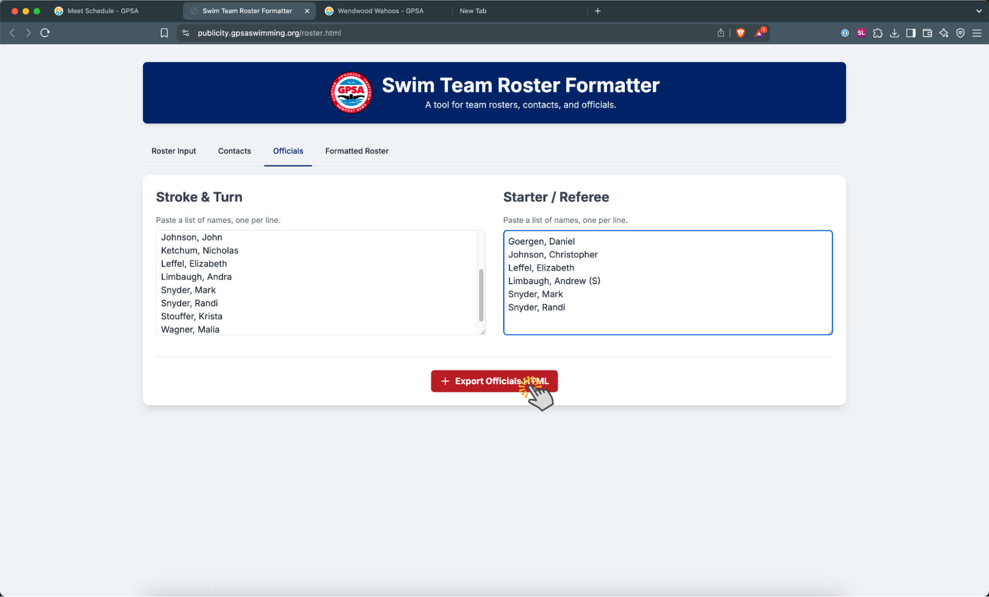1. Click on the Officials tab of the Swim Team Roster Formatter