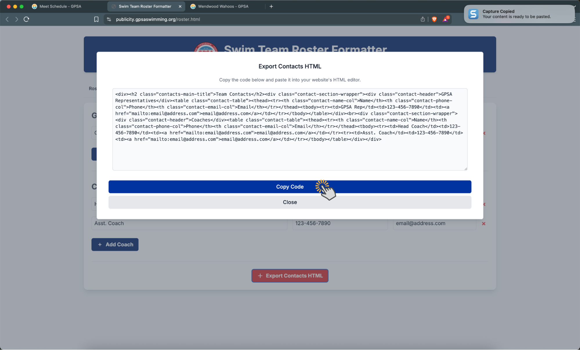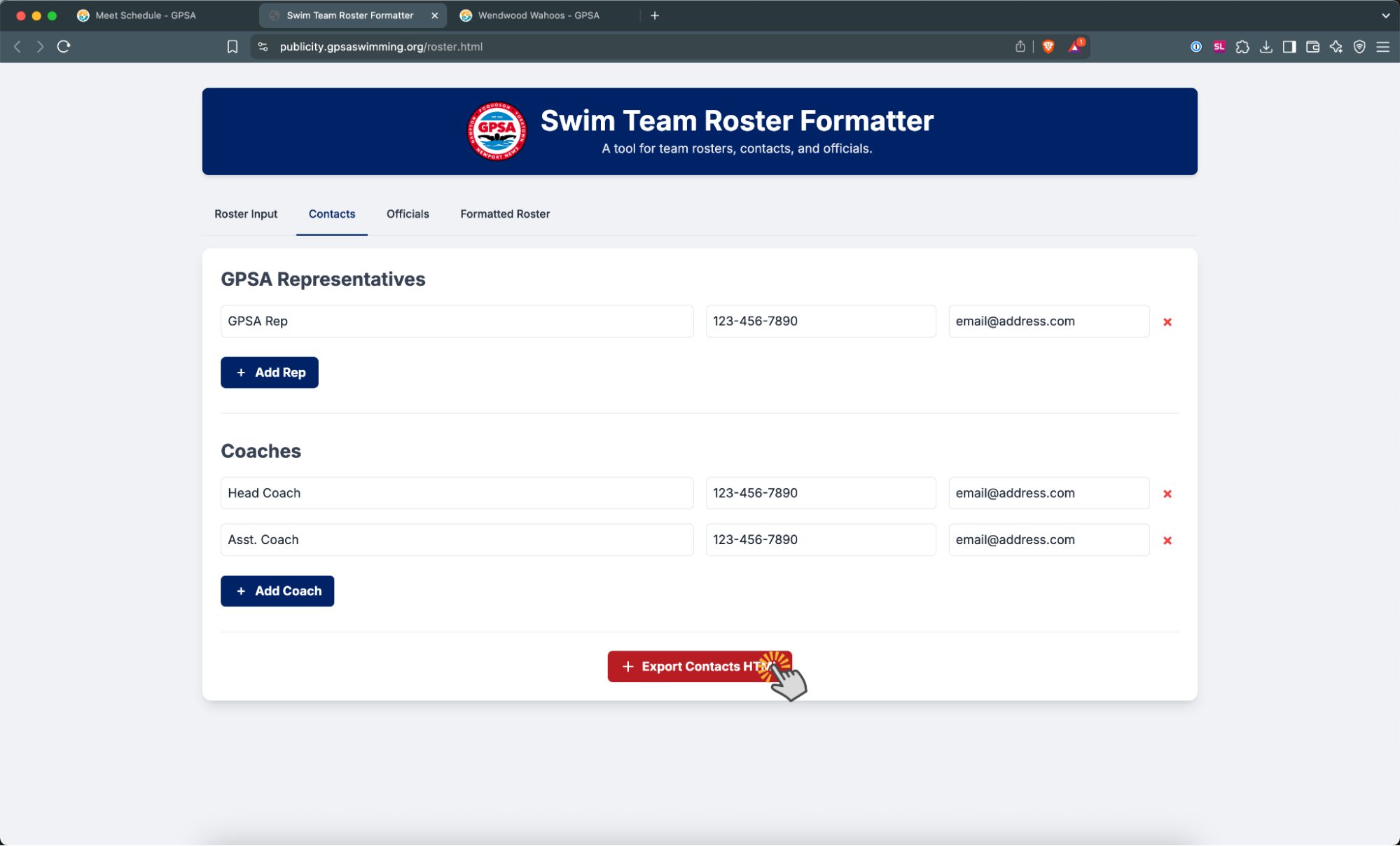 The formatter tool automatically saves your contacts and officials to your browser’s local storage: