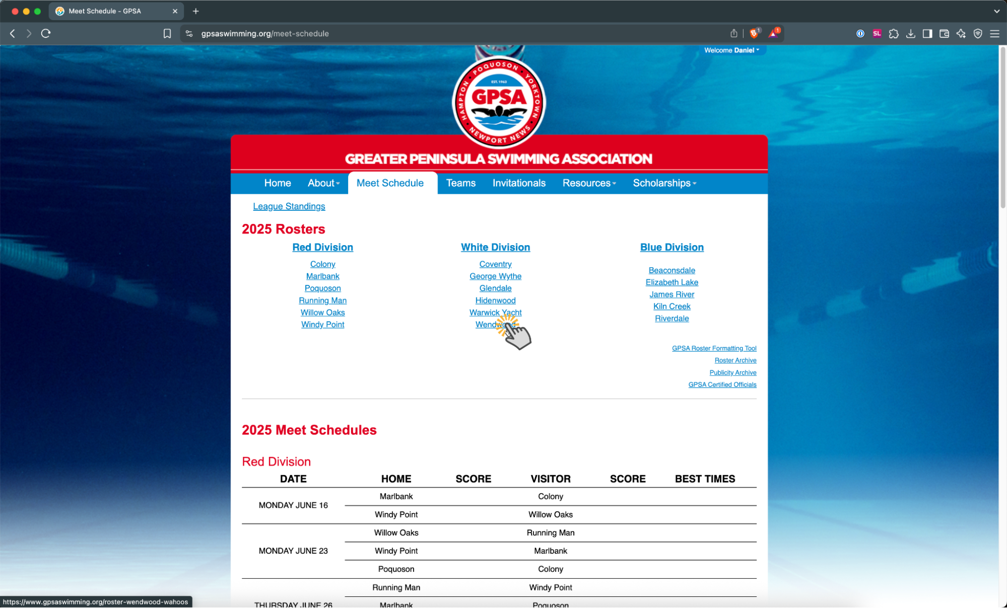 3. Click on your team name - This will open your team’s roster page in a new tab