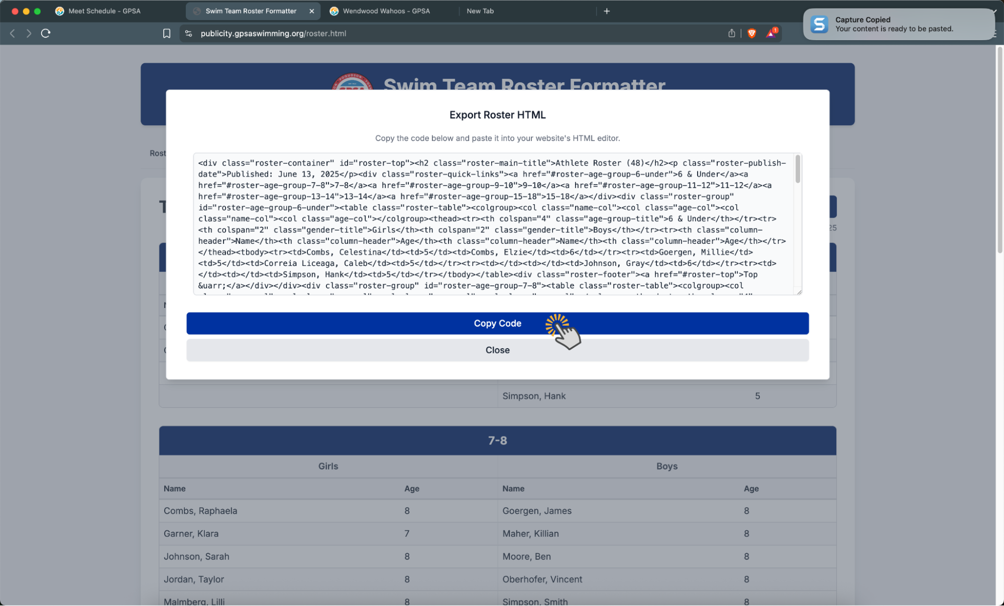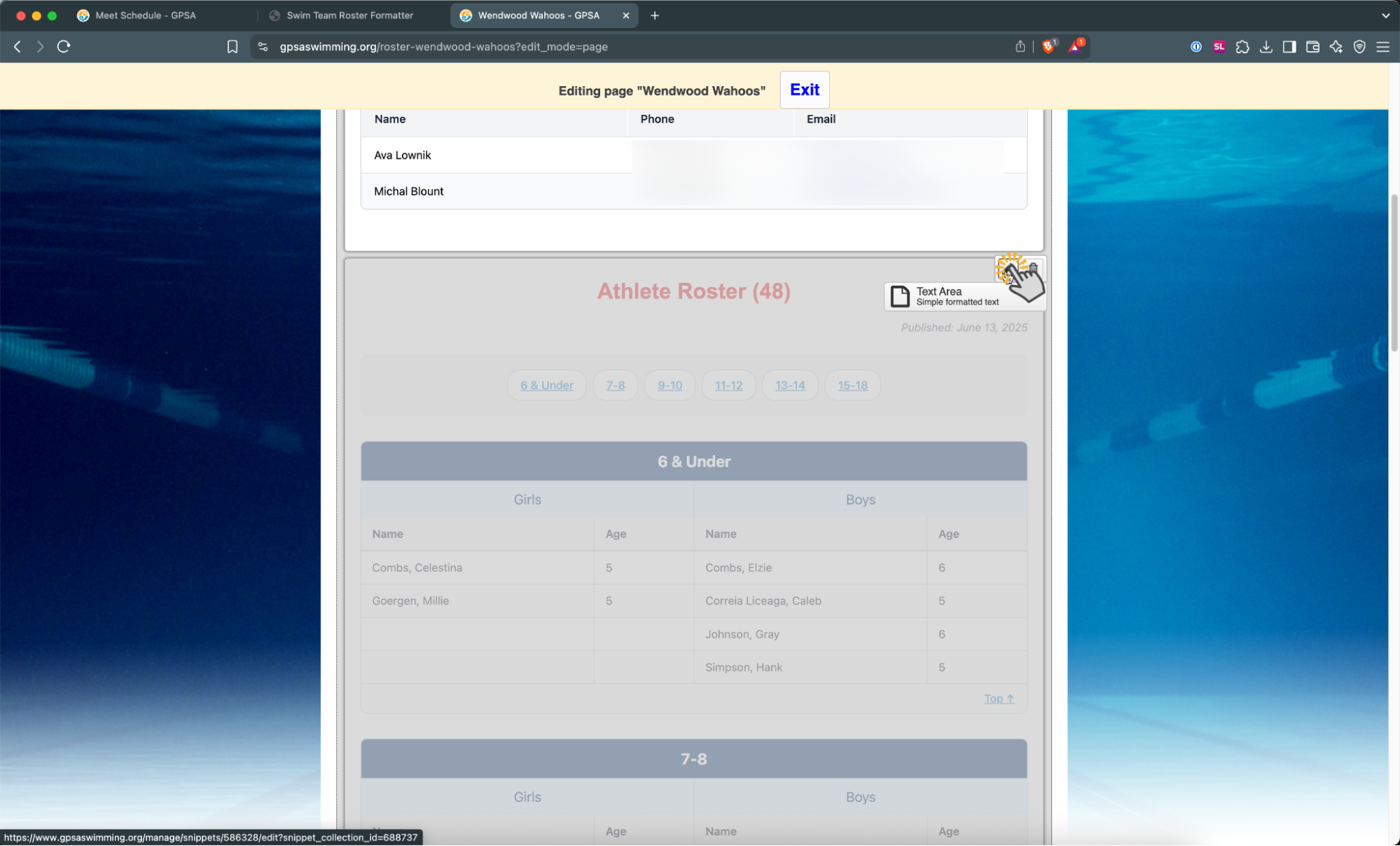 - Where to publish: Your team’s roster page on the league SwimTopia site
