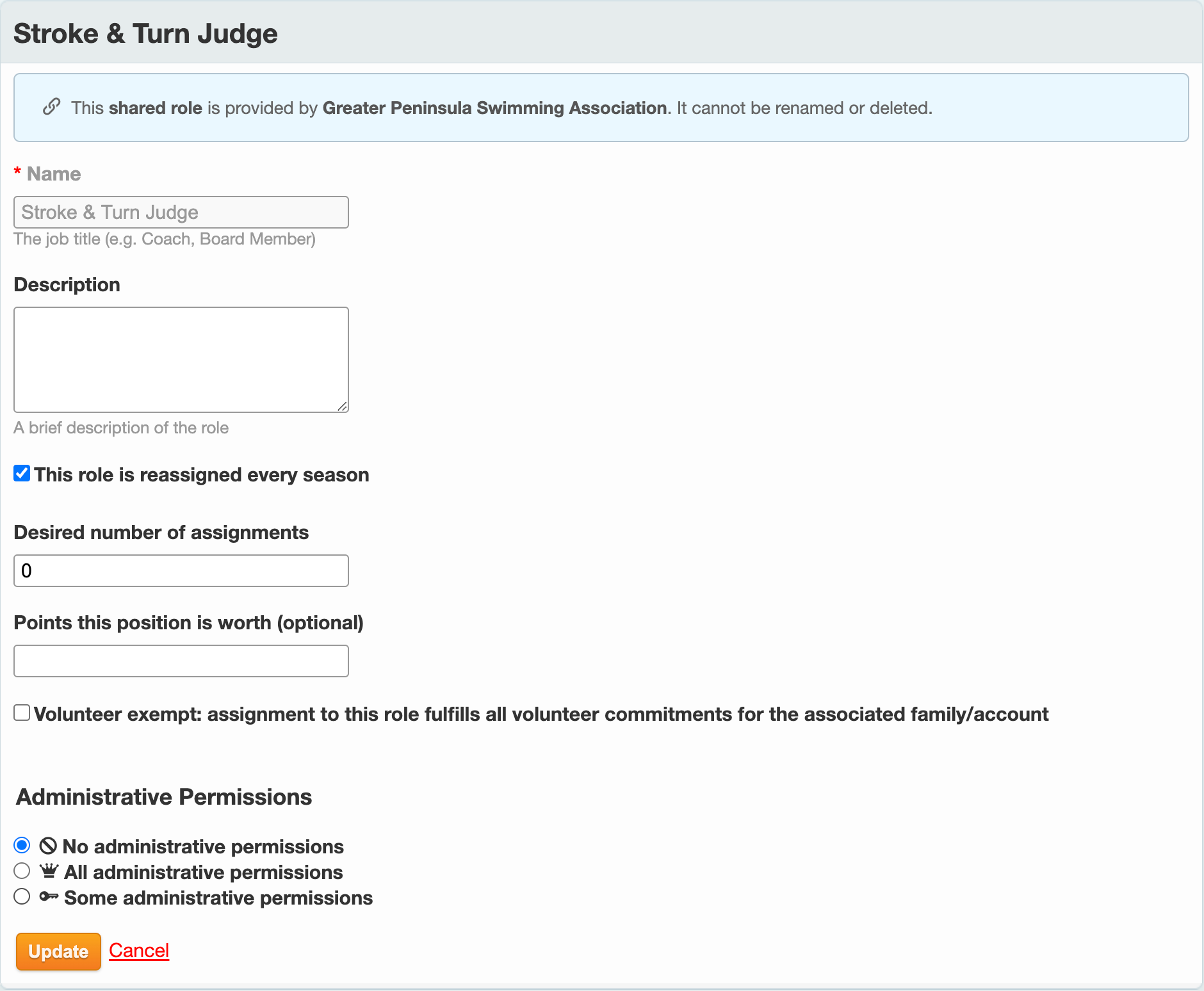 Roles allow you to organize people into groups for efficient communication and manage access within the Manage Team area. Any parent or athlete on your team can be assigned to a role for grouping purposes, from assigning meet jobs to sending group emails.