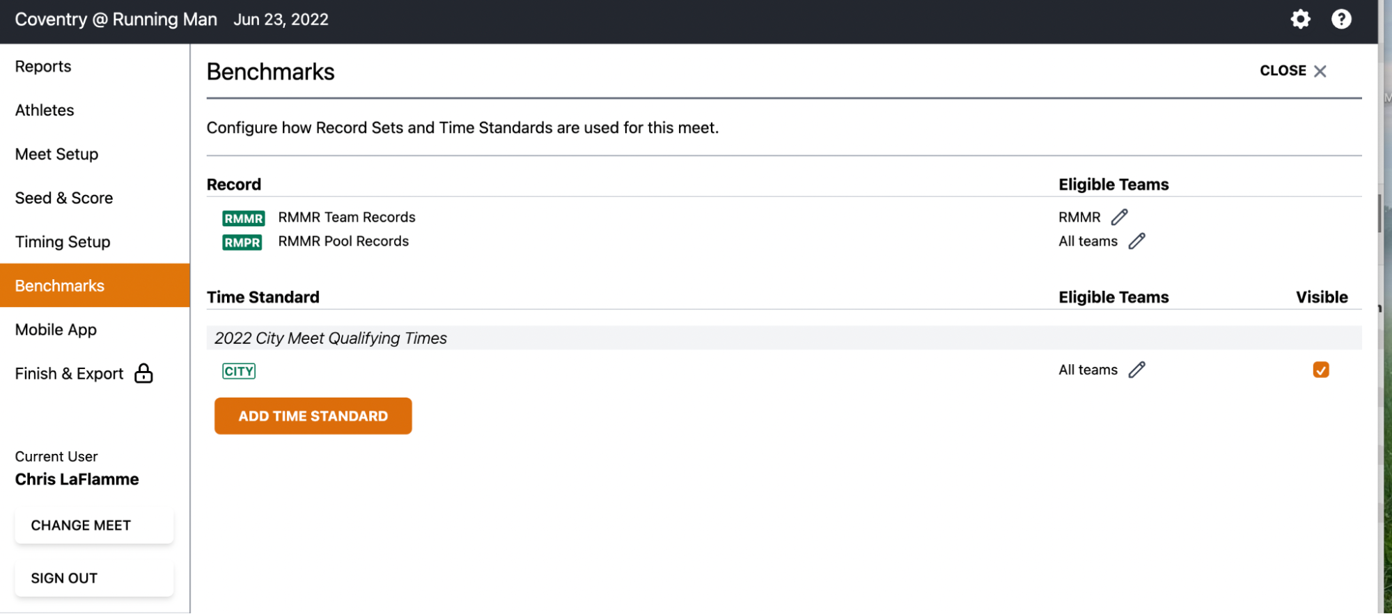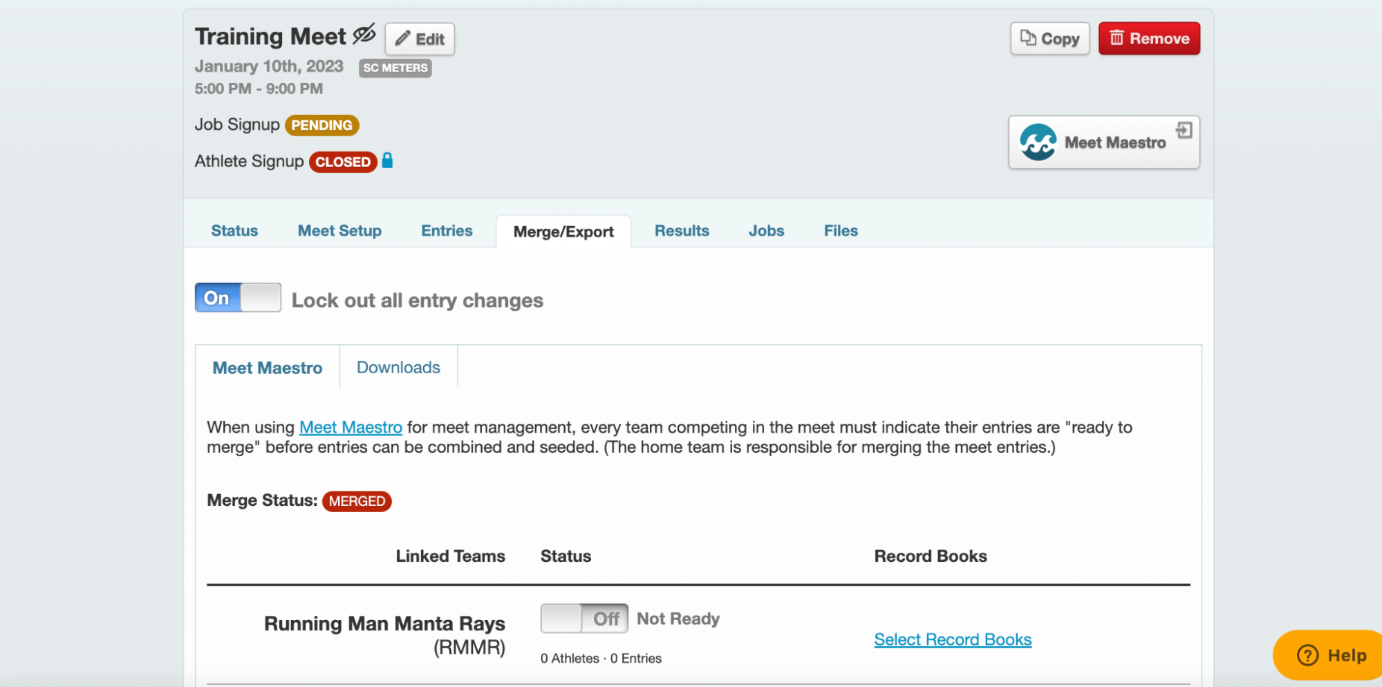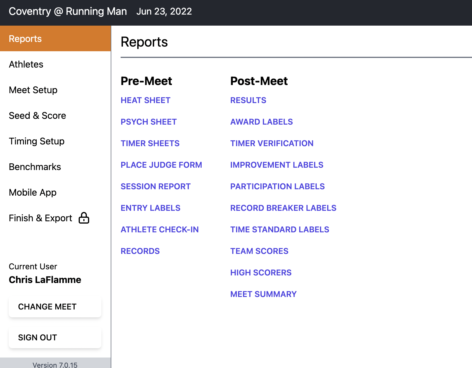 - Exporting results: Export Meet Results